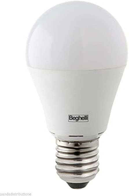 Beghelli 56961 Lampadina saving LED SMD 10W E27 850LM luce bianco naturale 4000K. Forma bulbo A60 goccia in materiale termoplastico (con copertura opaca).