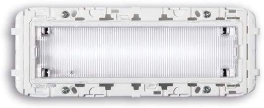 Funzione: Rest Mode (autonomo con modo di riposo). -Autonomia: 3h. -Tipo: SE (Solo Emergenza, non permanente). Flusso luminoso minimo in emergenza (conforme EN 60598-2-22): 60lm. -Batteria: Li-FePO4 3,2V 0,55Ah. Tipo batteria: Litio Ferro Fosfato. -Tempo di ricarica batteria: 12h. -Alimentazione: 230Vac 50-60Hz. -Classe di isolamento: II. -Classe di protezione IP: IP40. Temperatura di funzionamento: da 0 gradiC a +40 gradiC. Colore: Bianco. Glow wire 850 gradiC. Installazione: incasso su scatola 506 (scatola non fornita, verificare compatibilita’ telai-placche). Tipo: LED. Fonte luminosa: 6 LED. -Temperatura colore: 6000K.