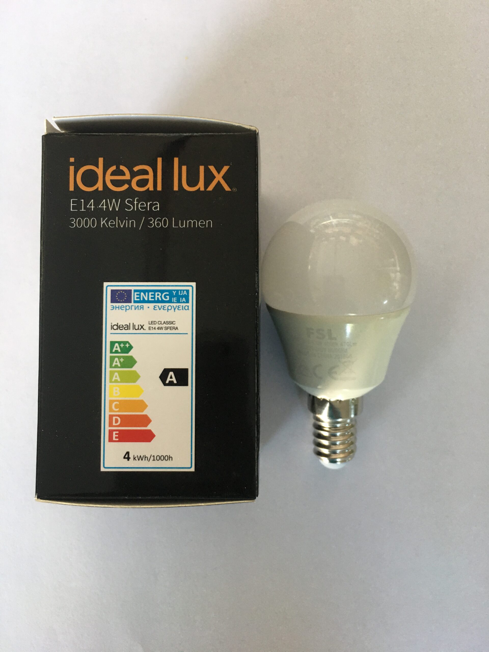 | Lampadina LED Ideal Lux E14 4W Sfera 3000 Kelvin/360 Lumen,bianco |